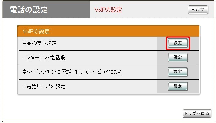 電話の設定>VoIPの設定>VoIPの基本設定