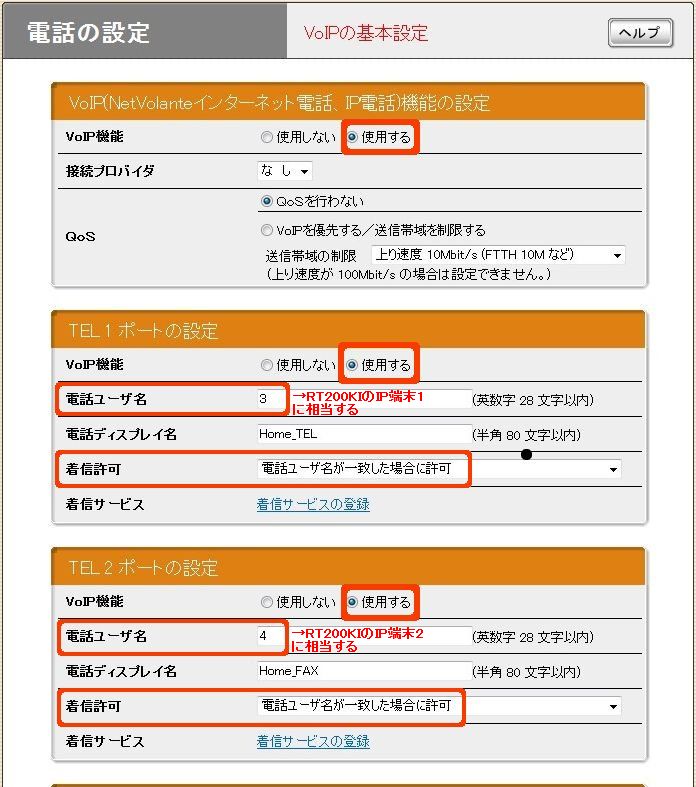 VoIPの基本設定
