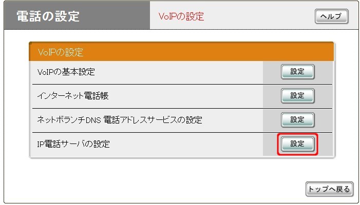 電話の設定>VoIPの設定>IP電話サーバの設定