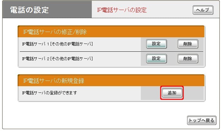 ・パスワード ****** さらにIP電話サーバを追加する