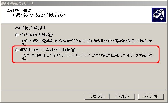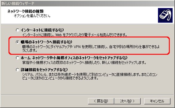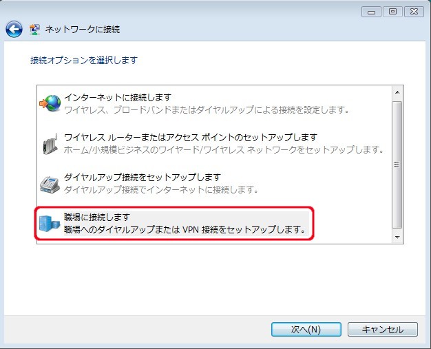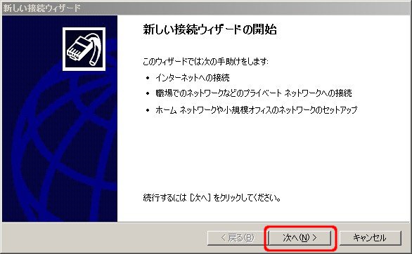 新しい接続のウイザードの開始という画面が出たら次へをクリック
