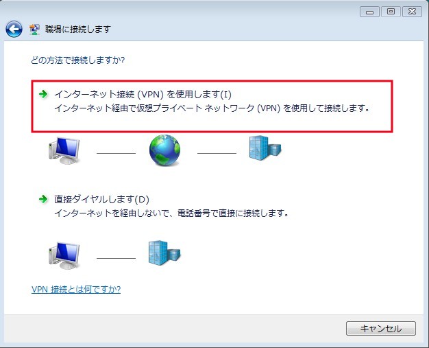 3.「インターネット接続(VPN接続)を使用します」をクリック