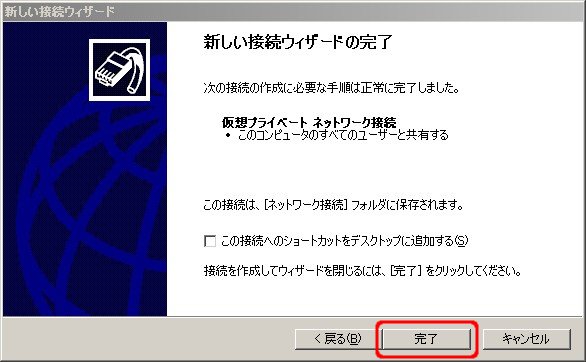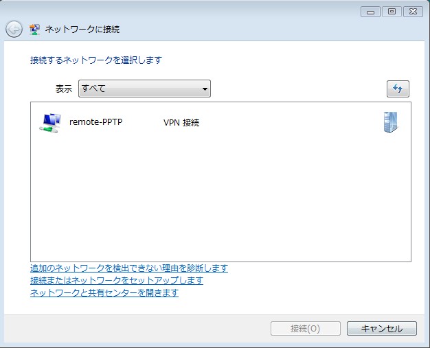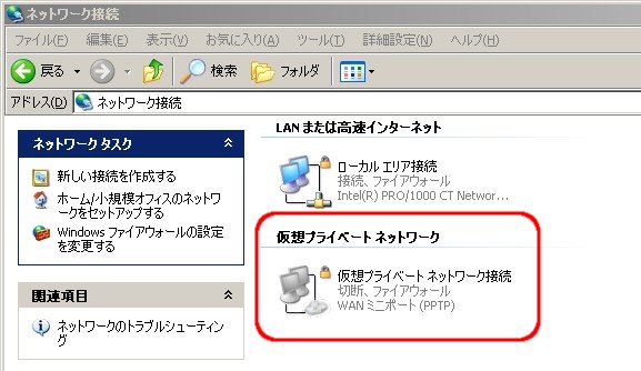 以上の作業で[ネットワーク接続]のウインドウに、PPTP-VPN接続用の接続設定が追加される。