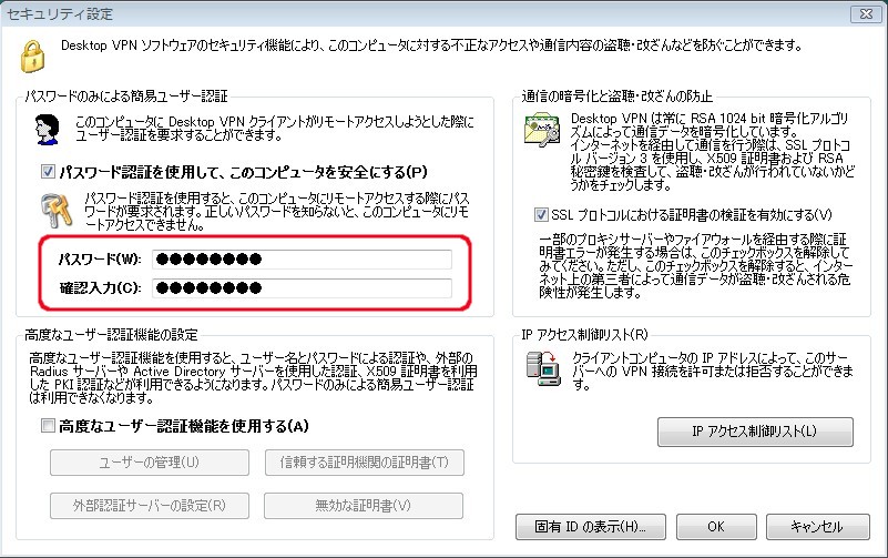 ここで入力するユーザー名とパスワードの文字列は、すでに確立されている SSL-VPN トンネル内を暗号化されて伝送されるので安全です。
