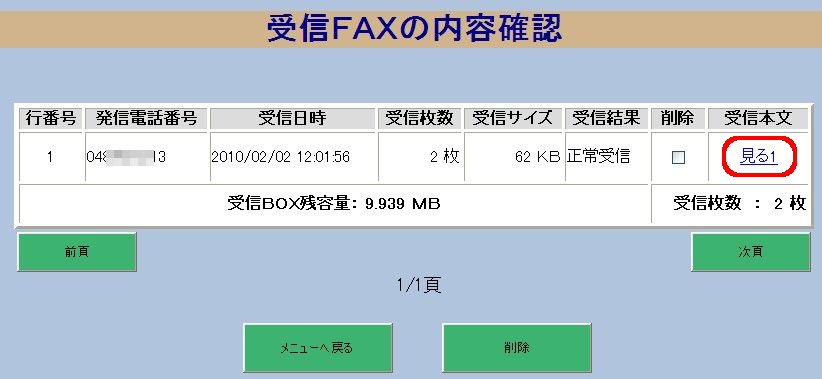 WEBサービスにログオンして内容を確認する。重要なFAXの場合は印刷する。不要なFAXは削除する。