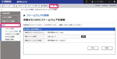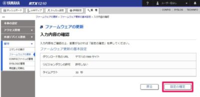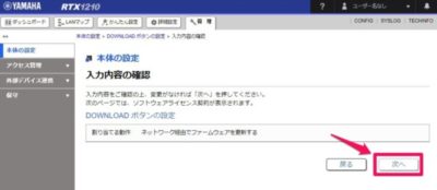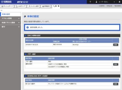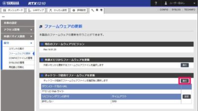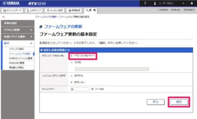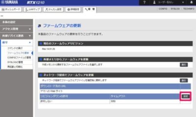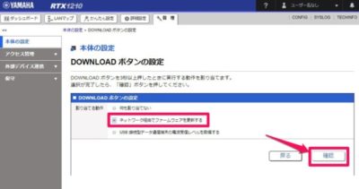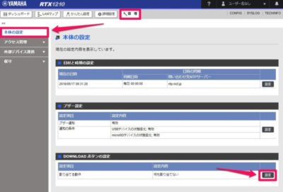 RTX1210本体のDOWNLOADボタンを3秒以上押すことにより、ファームウェアを更新できるようになります。まずDOWNLOADボタンを押したときの動作を設定する必要があります。