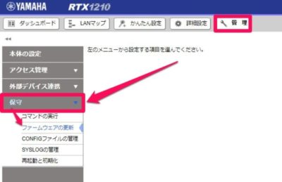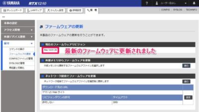 RTX1210の「ネットワークの見える化」によりファームウェア更新も簡単にできるようになりました。ログインしてダッシュボードから更新をかけるだけなので誰でもできます。
