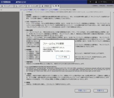 ファームウェアの更新が完了>[トップへ戻る]をクリック