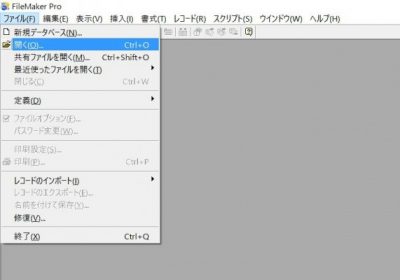 今回はファイルメーカー7を使って変換するので、ファイルメーカー7をインストールしておきましょう。以下のやり方でファイルを開いてください。変換するにはファイル単位で個別に変換、あるいは複数のファイルを同時に一括変換することも可能です。