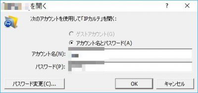 変換されたファイルを開く、アカウント名とパスワードを入力