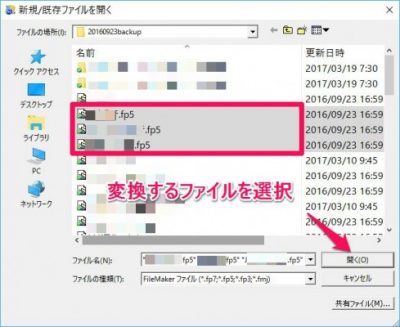 .fp5から最新の.fmp12まで変換するには2段階に分けて変換します。