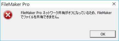 ネットワーク共有ONのファイルを変換して、新しいバージョンのファイルメーカーがネットワーク共有ONになっていないと以下のアラートが出ます。[OK]をクリック