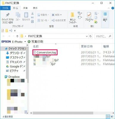 以上であらかじめ決めておいたフォルダに.fp7ファイルが変換されました。