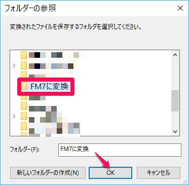 今回はあらかじめ作成しておいたフォルダ「FM7に変換」を指定