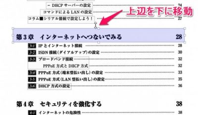 今度は上辺の真ん中あたりにマウスを充てると上下方向の矢印が出てくるので、下に移動して縮小します