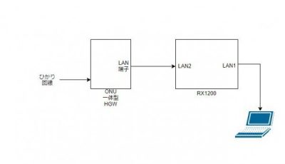 - ひかり電話を利用していない場合はRTX1200のLAN2ポートとONUを直に接続、もしくはHUB分けした以下のように接続