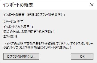 インポートが完了したら、念のために[ログファイルを開く]をクリックして確認しておきましょう。