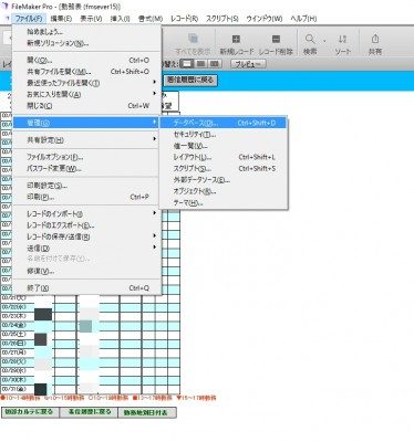 ファイルメーカーVer6までのファイル「.fp5」は一つのファイルに複数のテーブルを持つことができません。そのためリレーションを設定する場合は、新たにファイルを作成してからリレーションを設定します。当院で勤務表をファイルメーカー「.fp5」で作成していたのですが、メインの「勤務表」以外に「勤務地別日付表」および「職員別日付表」の3つのファイルを作成してリレーション設定をしていました。