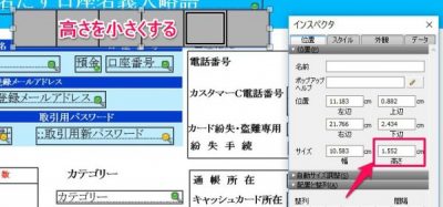 ボタンバーを選択して、インスペクタから高さを今回は0.8cmに変更