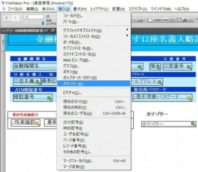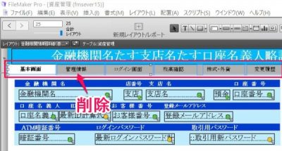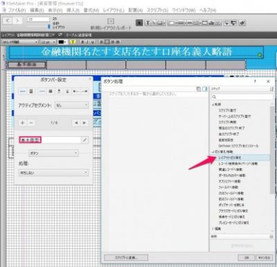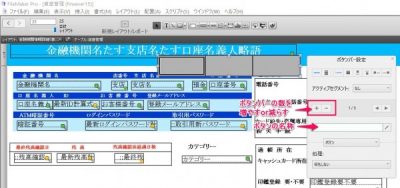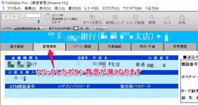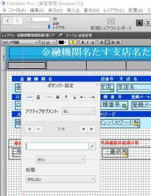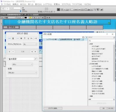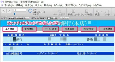 今回はこの部分をファイルメーカーに実装されている「ボタンバーの設定」で改良してみましょう。