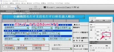 ボタンバーの下辺をヘッダー下辺の2cmに揃えます。