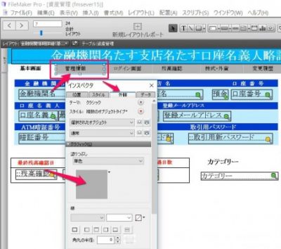ファイルメーカーでナビゲーションを作るには以前のバージョンだとちょっとしたコツが必要でした。□のブロックを作って、背景色を塗りつぶし、ボタンを設定することで画面変更とかを実現していました。