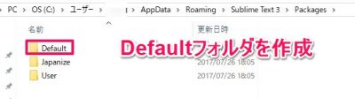 Packageフォルダの中に新たにDefaultファルダを作成して
