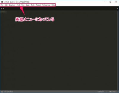 Sublime Text 3を起動するとメニュー画面が英語になっています。このままでも慣れれば大丈夫ですが、英語が嫌な人は日本語化が可能です。