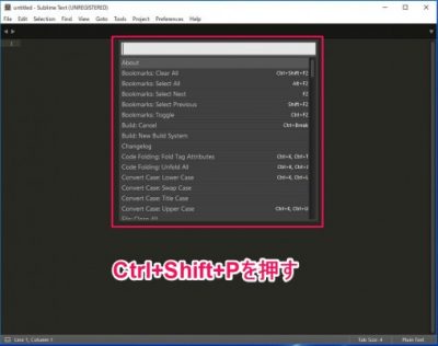 Windowsの場合「Ctrl+Shift+P」を押すと下の画面が出てきます