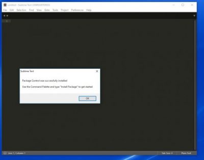 「Package Cotrolのインストールに成功しました」と表示されたら[OK]をクリック