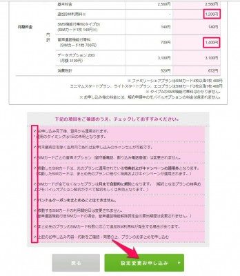 金額などを確認して☑をいれる>[設定変更お申込み]をクリック