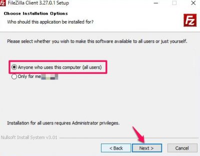 今回はすべてのユーザーが使えるように☑をいれて[Next]をクリック