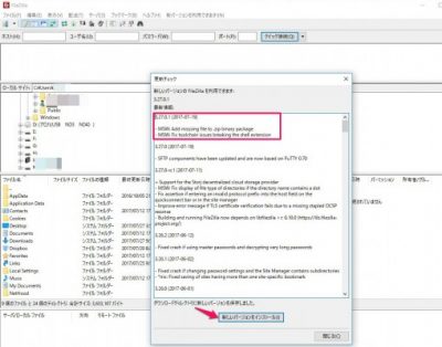FileZillaを起動>更新チェックで最新バージョンは2017年7月19日現在3.27.0.1
