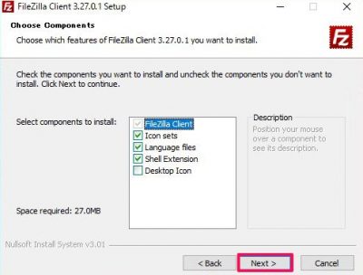 インストールするコンポーネントを選択、[Next]をクリック