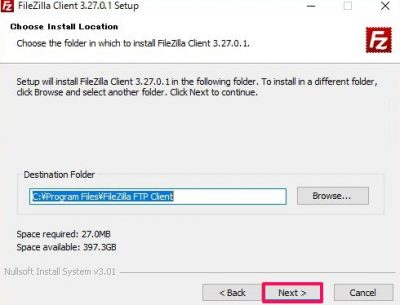 インストールする場所を選択、[Next]をクリック