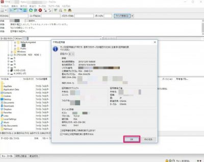 信用できるサーバかどうかの確認、問題なければ[OK]をクリック