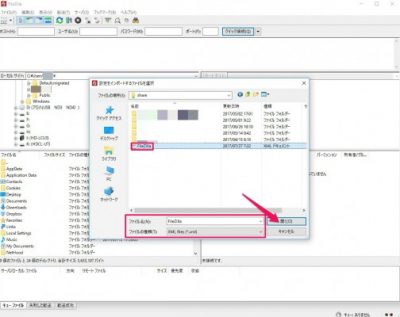 エクスポートするカテゴリーを選択、FileZilla.xmlとして保存