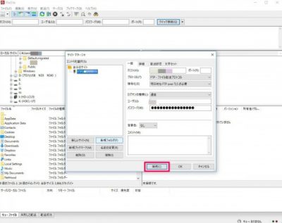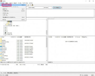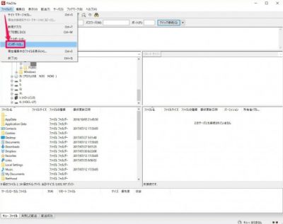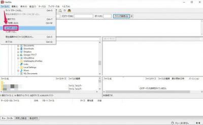 再起動してファイル>[サイトマネージャ]をクリック
