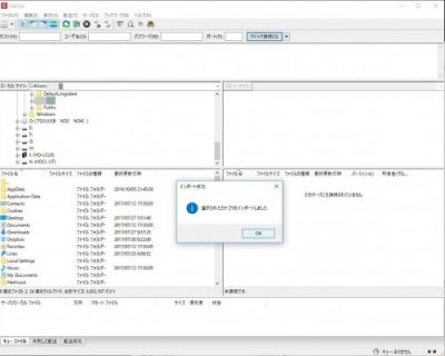 インポート完了。FileZillaを再起動すると設定が有効になります。