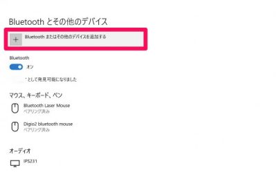 Bluetoothとその他のデバイス>+Bluetoothまたはその他のデバイスを追加するをクリック