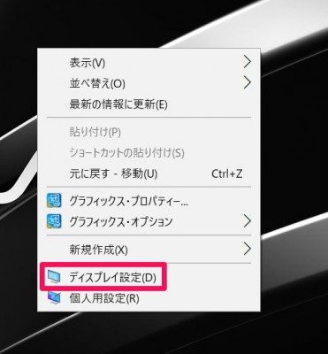 デスクトップで右クリック>[ディスプレイ設定]をクリック