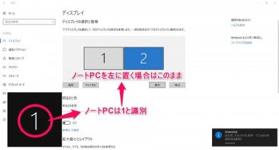左下に黒く1と表示されれば、VAIOを左に置くならこのままでOK