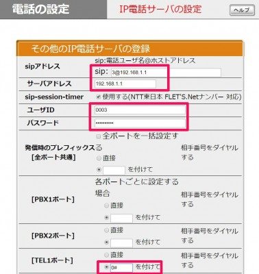 PR-400NE(SIPサーバー)の設定