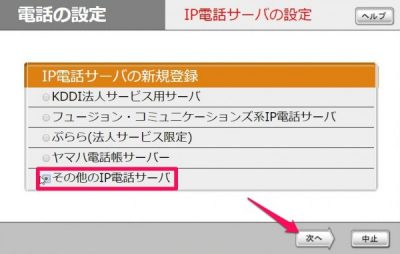 [その他の]IPサーバ]をクリックして、[次へ]をクリック