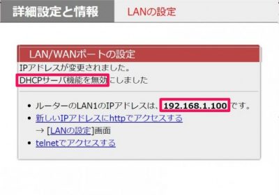 192.168.100.1から192.168.1.100に変更