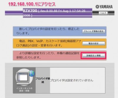 RTV700のLANアドレスをPR400NEと同じセグメントになるように変更
