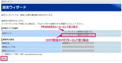 →PR400NEをルーターとして使用 - インターネット接続を設定しない