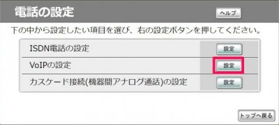 電話の設定>VoIPの設定>VoIPの基本設定の[設定]をクリック