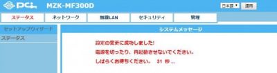 ログインするとMZK-SA300DはMZK-MF300Dに変更されていれば、無事ルーターとして使えるようになります。