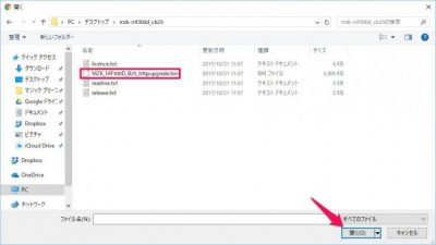 先ほど解凍しておいたMZK_MF300D_B25_httpupgrade.binを選択して[開く]をクリック